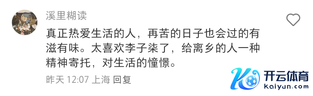 此外,还有许多不雅众,与其说他们爱看李子柒的视频,不如说他们但愿我方能领有视频中李子柒的糊口情状:找一个我方可爱的场所——好多时候东说念主们但愿回到我方的家乡,过着有家东说念主相伴,与天然亲密斗殴,不错缓缓作念一件事的糊口。在李子柒的视频谈判区,也泛泛不错看到“想过博主这样的糊口”等访佛的谈判。