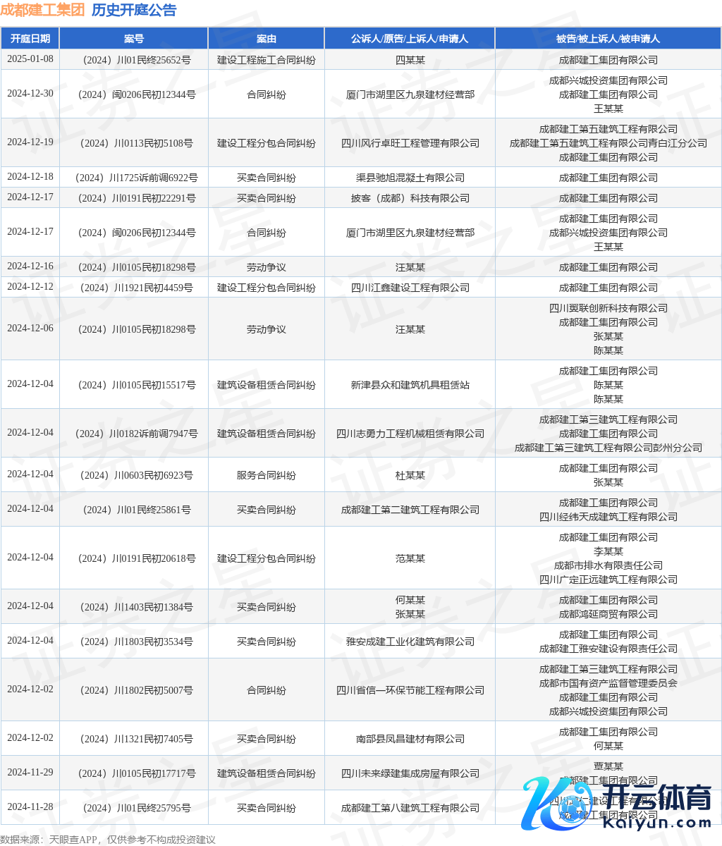 本站音信,凭据天眼查APP表现,近日公布了一则成齐建工集团有限公司行为原告/上诉东说念主的开庭公告,详备实质如下: