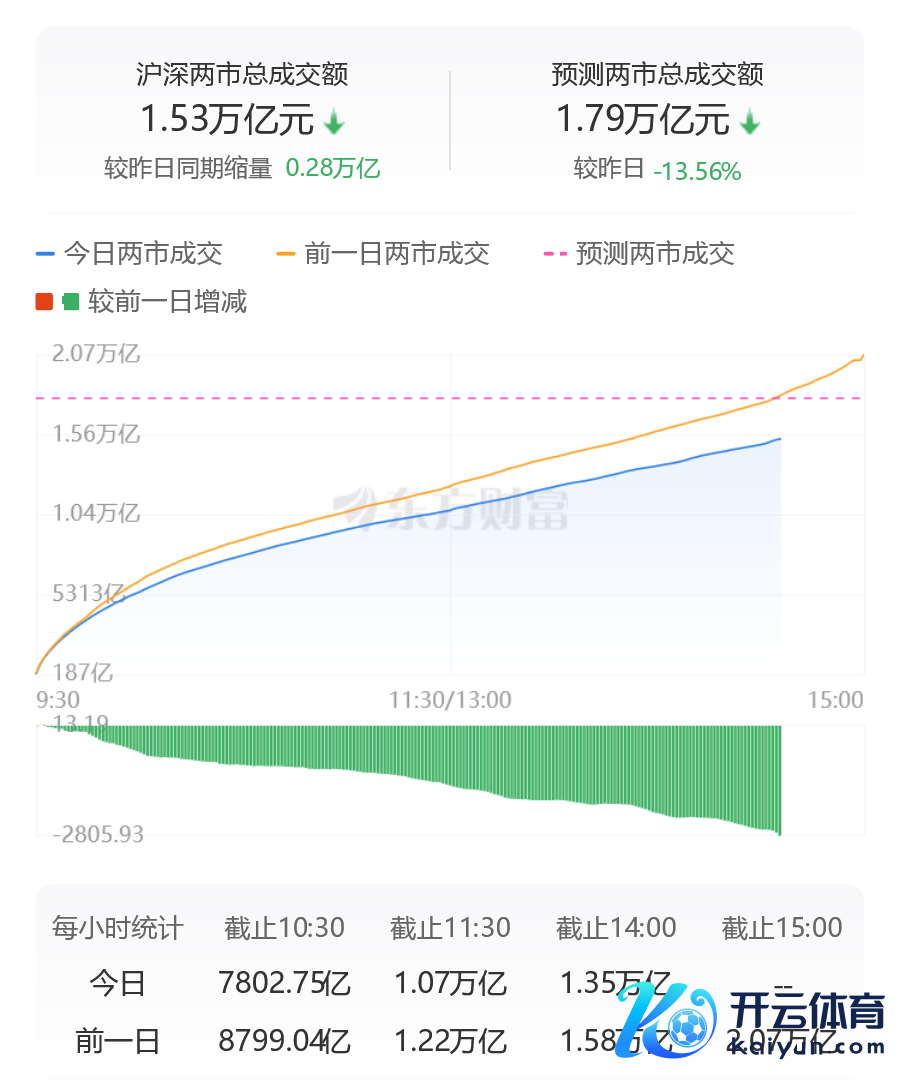 沪深两市成交额一语气第12个交游日毁坏1.5万亿欧洲杯体育,较上一日此时缩量超2600亿。