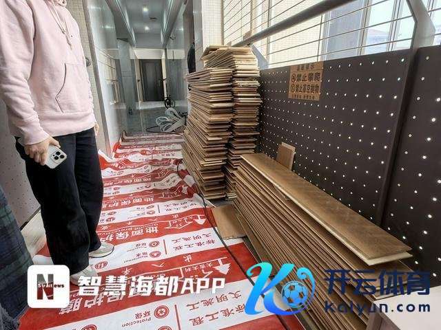 杜女士家中三个卧室撤废的木地板堆放在门口