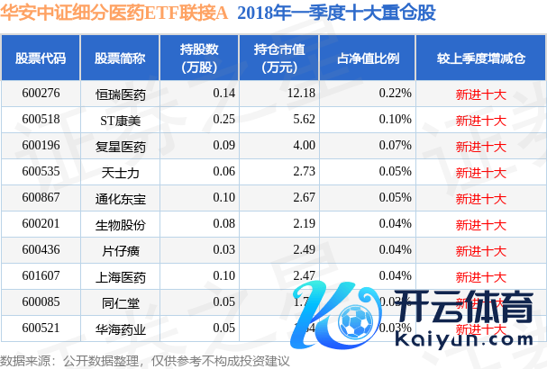 华安中证细分医药ETF联贯A为指数型-股票基金,凭据最新一期基金季报线路,该基金钞票建立:无股票类钞票,无债券类钞票,现款占净值比5.46%。基金十大重仓股如下: