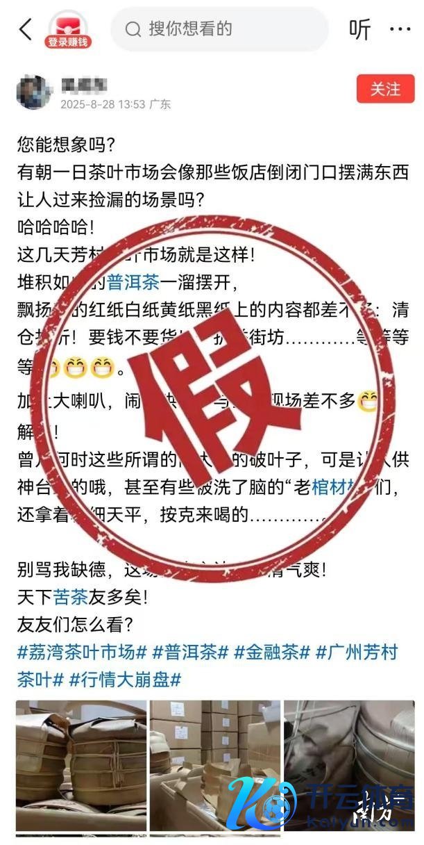 8月29日,记者实地拜访芳村茶业城、锦桂茶叶市集、启秀茶城、广易茶博园、南边茶叶市集等茶叶批发市集核实,上述网传骨子实为假话,芳村茶叶市集全体运营安妥,并未出现大边界急躁性抛售。